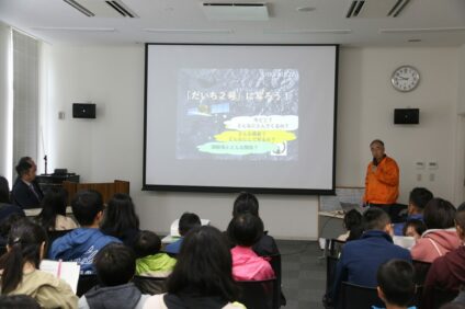 参加した親子は、初めに日本宇宙少年団呉やまと分団長である臼井敏夫様から「だいち2号」について説明を受けました。