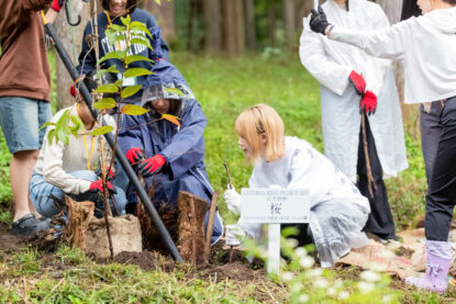 まず、日本郵船㈱管理地「ゆうのもり」にて、プロジェクトメンバーと共に桜の植樹を行い、森林サイクル の一環を体感しました。