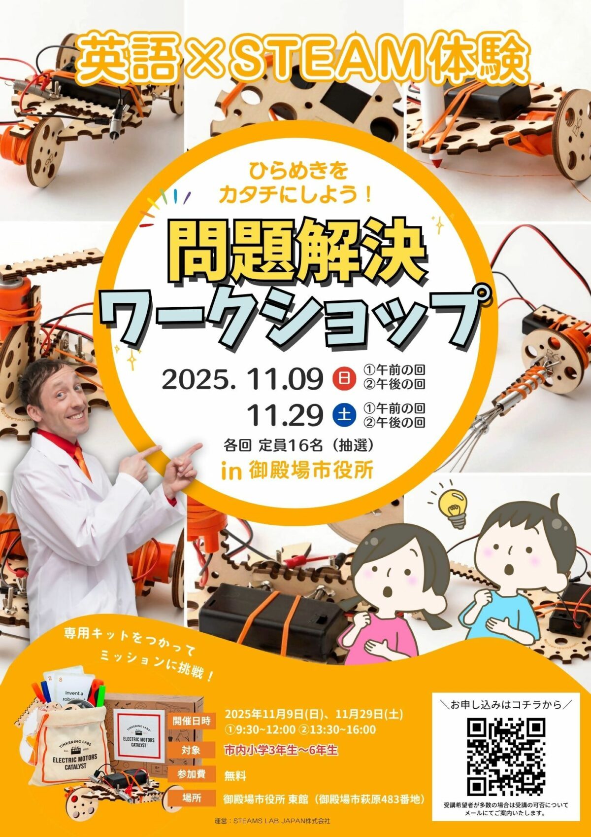 今回も昨年度実施した、STEAM教育の本場アメリカで生まれた「ティンカリングラボ」を使用したワークショップを実施します。