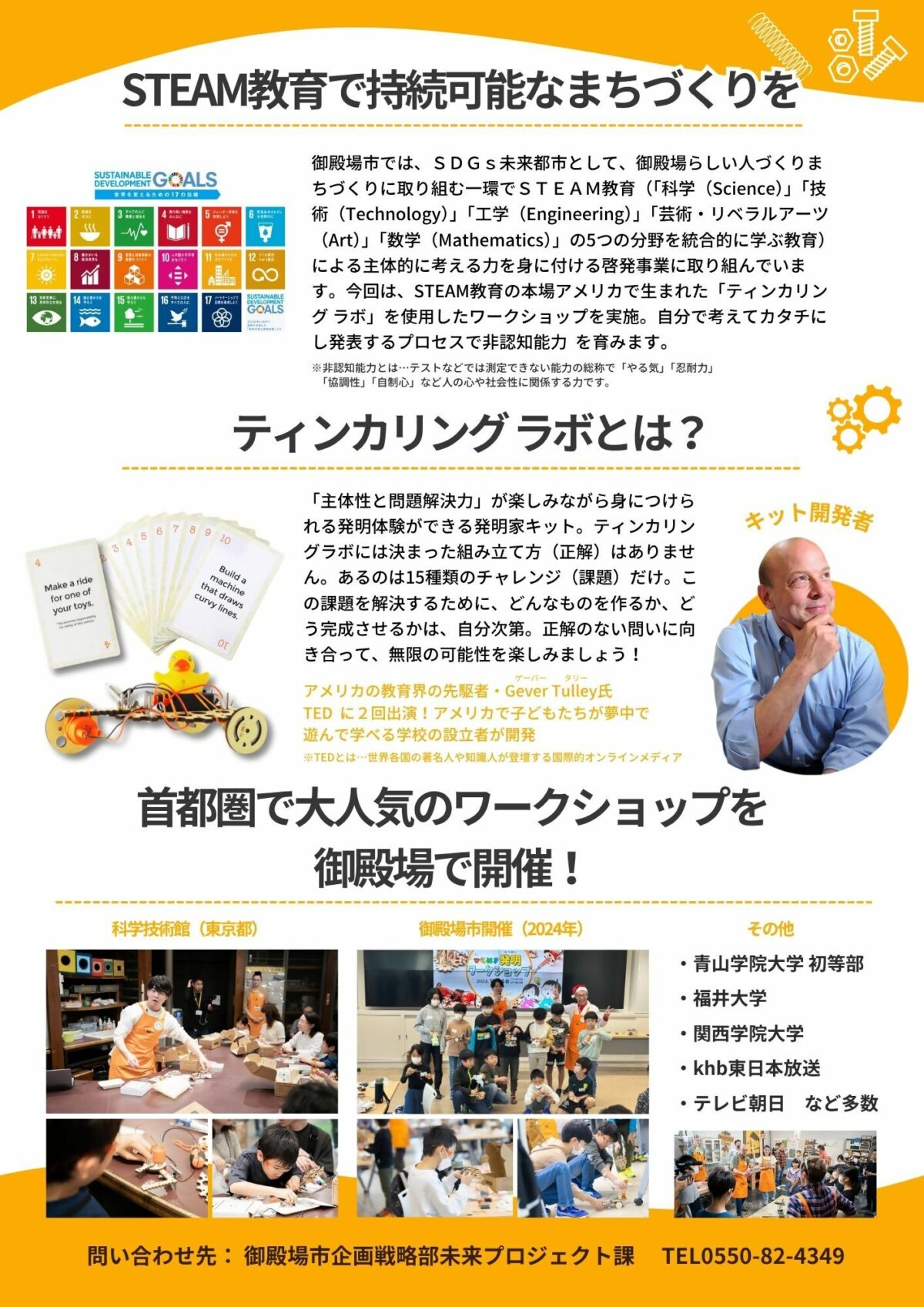 SDGs未来都市として御殿場らしいまちづくり人づくりに取り組む一環でSTEAM教育による主体的に考える力を身に付ける啓発事業に取り組んでいます。