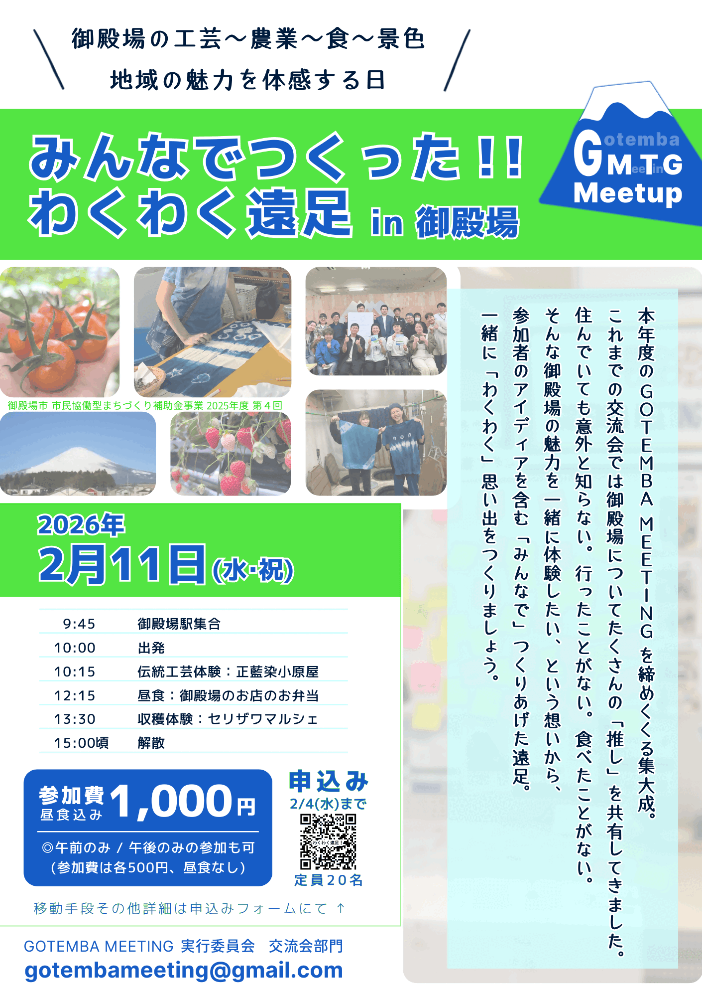 令和8年2月11日(水・祝)、『GMTG Meetup(ジーエムティージーミートアップ) vol.4 -みんなでつくった!!わくわく遠足in御殿場-』が開催されます。