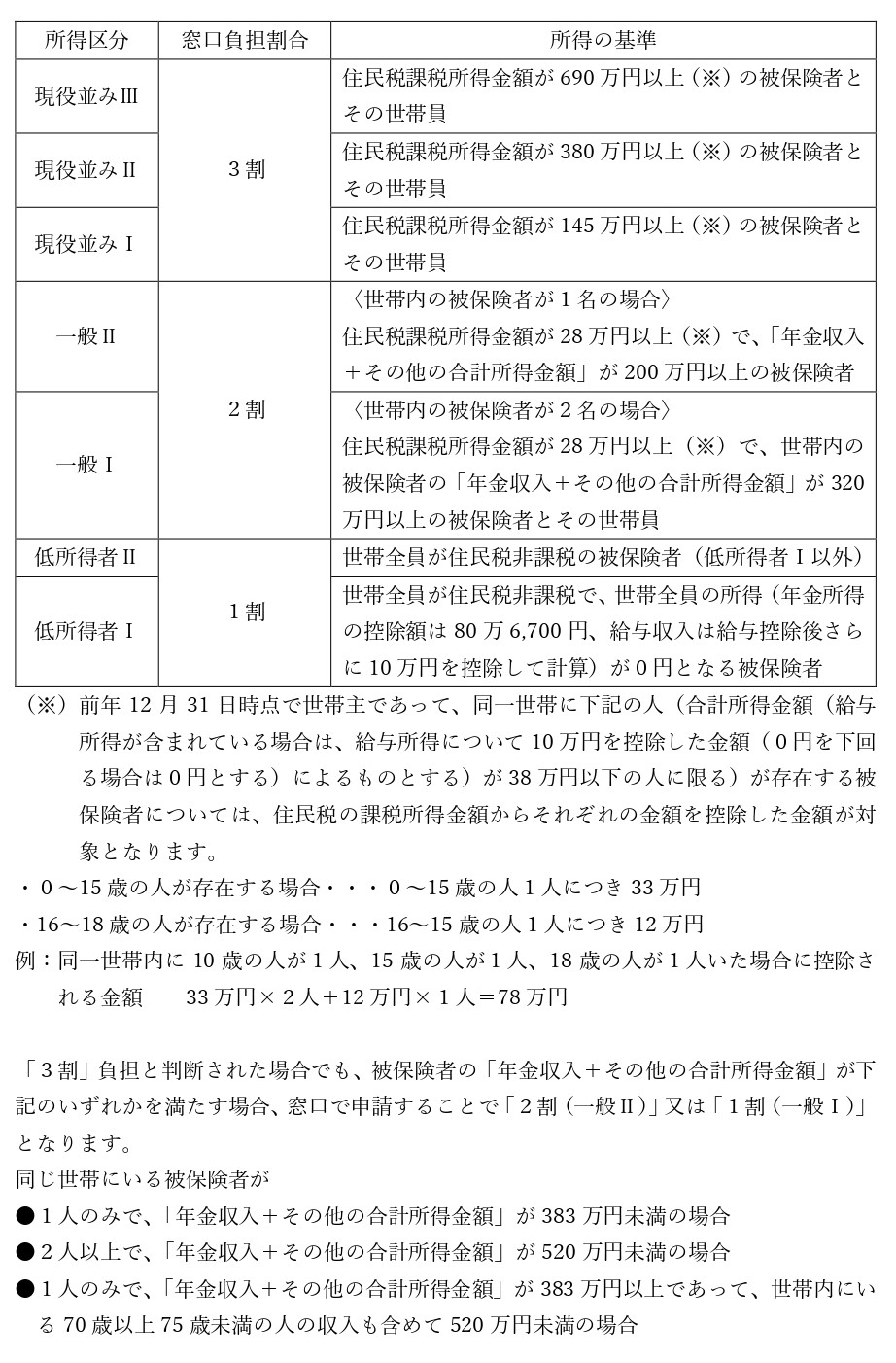 後期高齢者医療費の窓口負担割合は下表の所得区分によって決まります。
