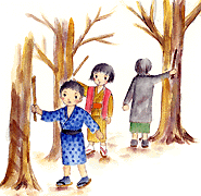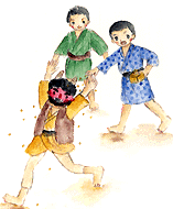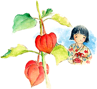 ※子どもたちは、ほうずきの実の中の種を取り出し、競い合って笛のように鳴らします。子どもの遊び歌です。