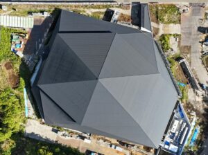 ・屋根工事が完了し、多角形の美しい屋根が完成しました。
