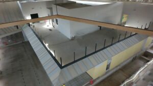 ・内部では内屋根の工事が完了し、床の工事に着手します。