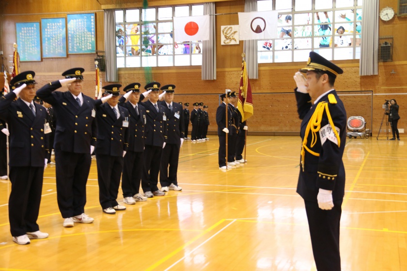 平成29年消防出初式 Posted on 2017年1月11日2021年10月7日 by 御殿場市 日時 平成29年1月8日(日)8時30分~ 会場 御殿場中学校体育館 平成29年消防出初式が行われ、消防団・消防職員など約500名の出席がありました。若林市長は観閲者告辞の中で「昨年はこの10年間で最も少ない火災件数でした。これも消防に従事する皆さんの日頃からのご協力のおかげです。今後も地域の防災リーダーとして、市の危機管理体制の充実にお力添えをお願いします」とあいさつしました。