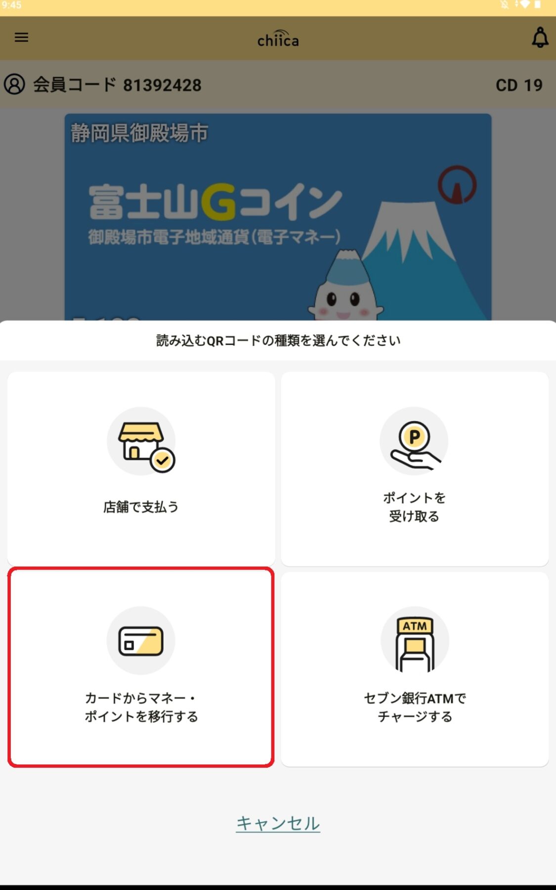 3 残高のあるカードのQRコードを起動したカメラで読み取る