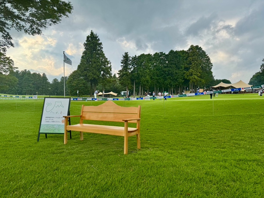 その活動の一環として、8月23日(土)・24日(日)に太平洋クラブ御殿場コースにて開催された「マルハンカップ太平洋クラブシニア」に、御殿場産木材「ごてんばっ木(こ)」のベンチがお出掛けをしてきました。