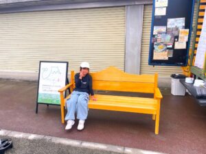 当日は、雨の中でしたが、選手たちはモルックを真剣なまなざしで楽しんでいました。キッチンカーのそばにいた、ごてんばっ木の富士山ベンチにも会ってくれました。